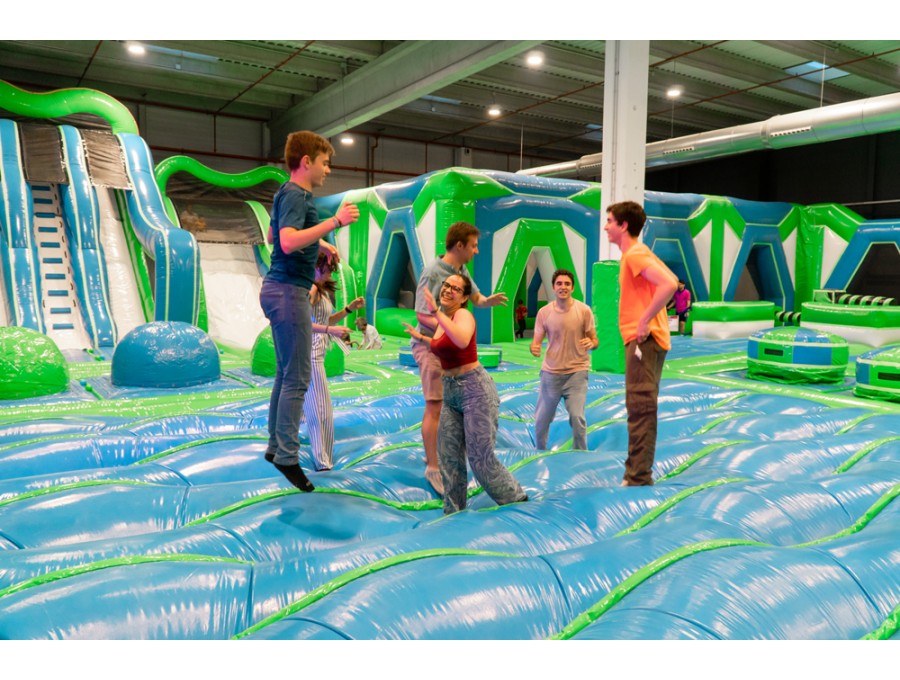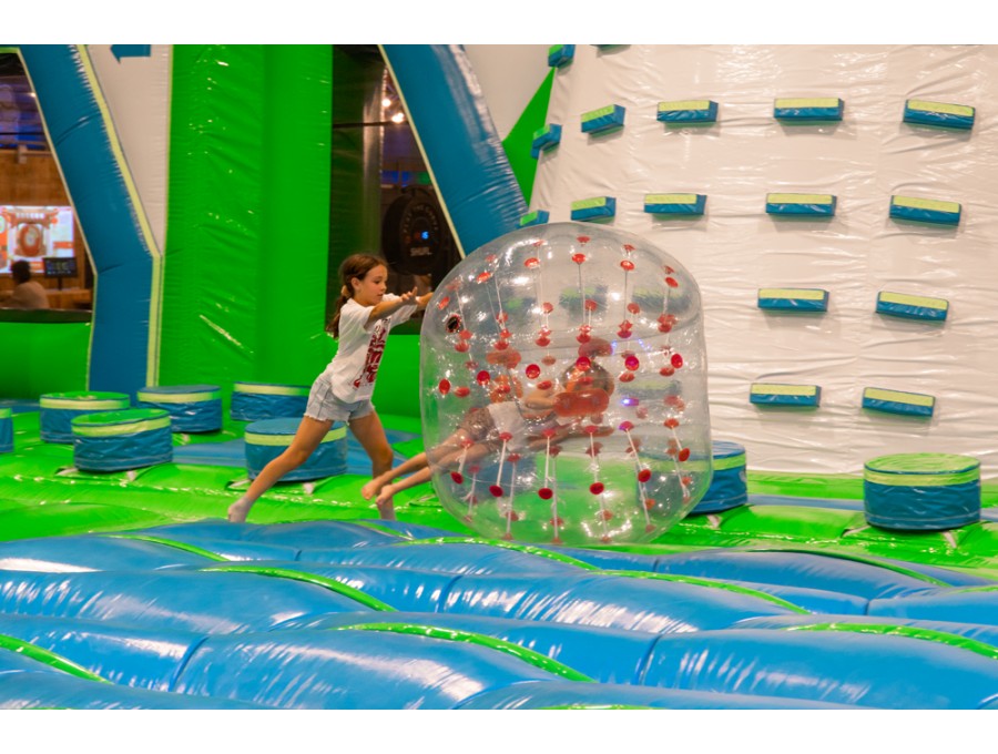 Another great example of success is Ozone Bowling in Zaragoza, Spain. Recently, one of the biggest names in the entertainment industry in Europe opened an amazing indoor new facility that included one of our inflatable concept parks. With the addition of 12,000 square feet of Inflatable Park, the center was able to offer a wider range of activities that appeal to both kids (a special 2,000 square feet park was created for toddler use) and adults (this one including our signature DJ booth). And, because our inflatable parks are customizable, they were able to design the park to fit their space and needs perfectly.